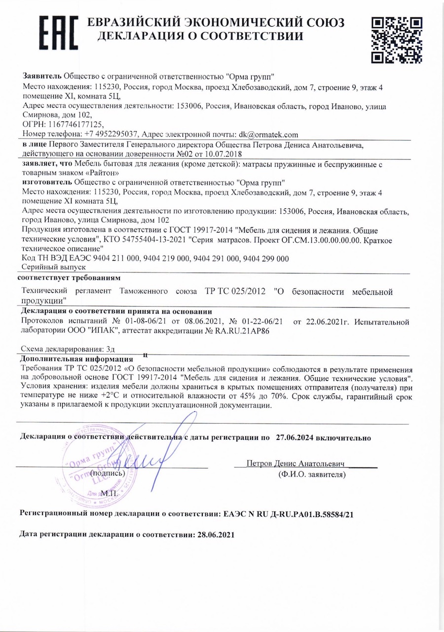 В составе матраса используется пена Raitex толщиной 2 см (ППУ), которая обладает повышенной упругостью, функциональностью и долговечностью.